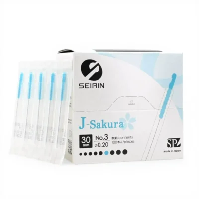 SEIRIN J-Sakura adatos – tai profesionalios, Japonijoje gaminamos akupunktūrinės adatos su šiaudeliu, skirtos dar lengvesniam ir tikslesniam įvedimui. Šiaudelis padeda stabilizuoti adatą įvedimo metu, todėl procedūra tampa paprastesnė ir komfortiškesnė tiek specialistui, tiek pacientui.
