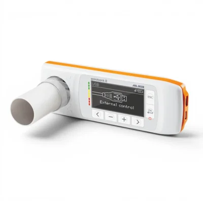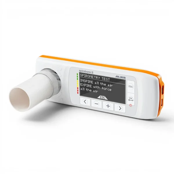 MIR Spirobank II Smart – tai universalus nešiojamas spirometras, skirtas darbui tiek kabinete, tiek mobiliai. Prietaisas gali veikti trimis skirtingais režimais: autonomiškai, prijungtas prie kompiuterio arba per Bluetooth ryšį su planšete.