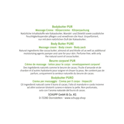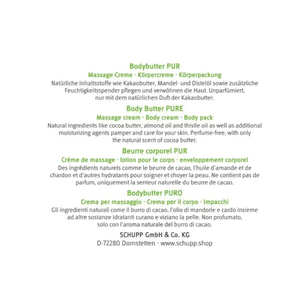 Kaip ir visi „Schupp“ odos priežiūros produktai, šie kūno sviestai yra draugiški aplinkai, veganiški, nebandyti su gyvūnais, o pakuotės – perdirbamos ir pagamintos iš atsinaujinančių žaliavų.