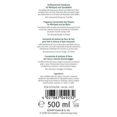 SCHUPP jau 85 metus specializuojasi kurdamas aukščiausios kokybės produktus SPA ir sveikatingumo sričiai. SCHUPP vonių koncentratai sukurti taip, kad būtų tinkami naudoti sūkurinėse ir burbulinėse voniose – neputojanti formulė užtikrina saugų ir sklandų įrangos veikimą.