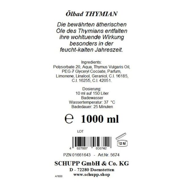 Vonios aliejus SCHUPP, čiobrelis, 1 L