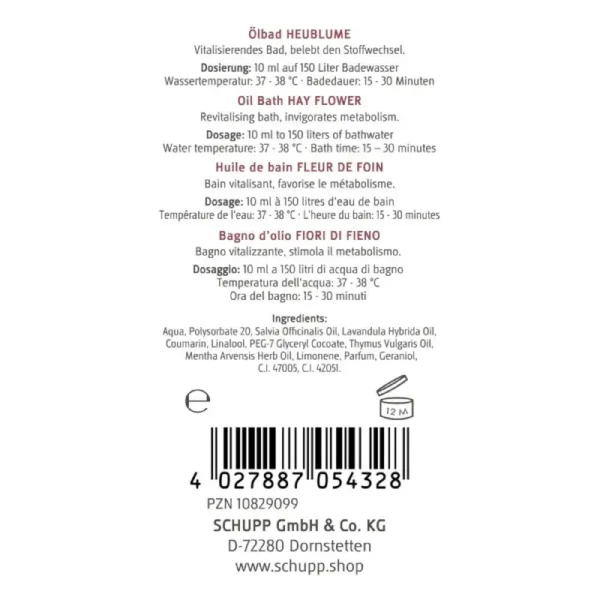 SCHUPP jau daugiau nei 85 metus specializuojasi kurdamas aukščiausios kokybės SPA ir balneoterapijos produktus. SCHUPP vonios aliejai pasižymi kruopščiai atrinktais augaliniais ekstraktais, naudojamais tiek klasikinėje balneologijoje, tiek profesionaliose sveikatinimo procedūrose.