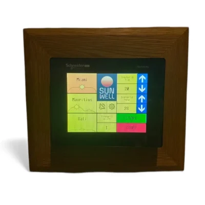 Valdymas vyksta per didelį jutiklinį ekraną – galima nustatyti laiką, temperatūrą, garsą, programą, kalbą.
