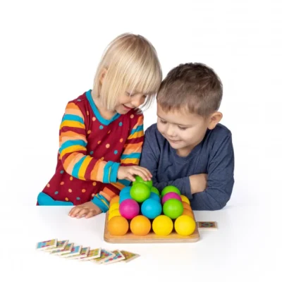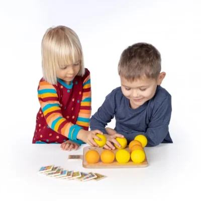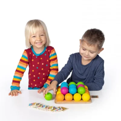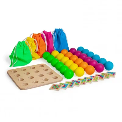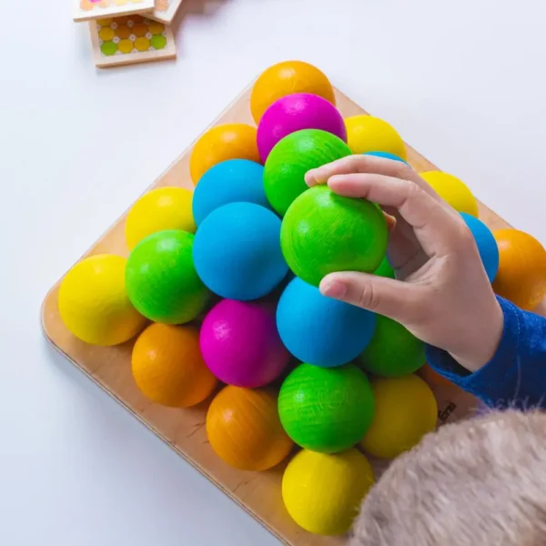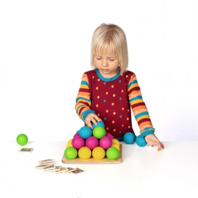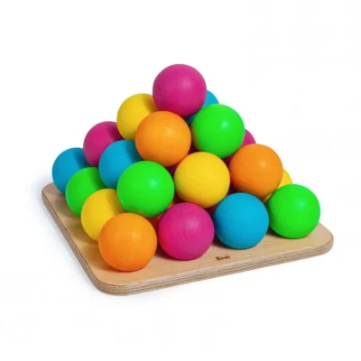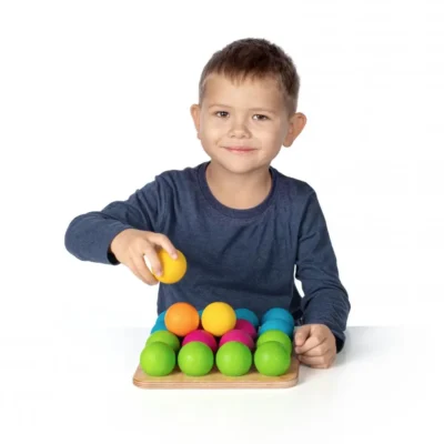 Froebelio rutulių žaidimas – kūrybiškas ir lavinamasis rinkinys su 30 ryškiaspalvių medinių kamuoliukų, skirtas vaikų motorikai, kūrybiškumui ir koncentracijai stiprinti. Vaikai mokosi koordinuoti judesius, atpažinti spalvas bei lavinti dėmesį.