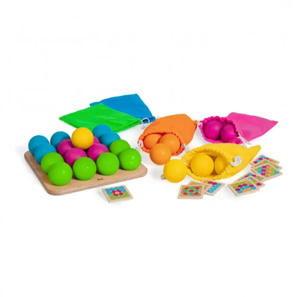 Kamuoliukų rūšiavimas pagal spalvas į medvilninius maišelius padeda išlaikyti tvarką ir sustiprina spalvų pažinimą. Po žaidimo juos rūšiuojant, lavinami organizaciniai ir atsakomybės įgūdžiai.